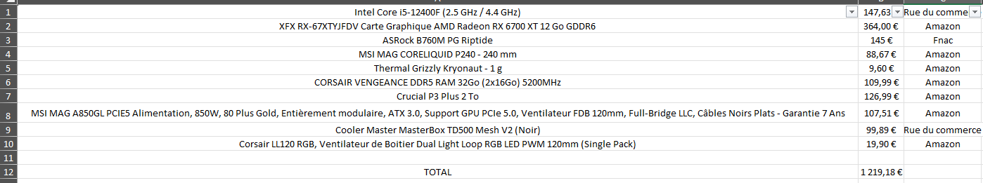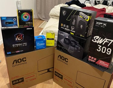 I started by researching all the components I would need. It was more complicated than I expected, as I had to ensure compatibility between components, choose the right cooling system for the CPU, calculate the appropriate power supply size, and verify compatibility between the motherboard, RAM generation (DDR), and storage (NVMe PCIe). Additionally, I needed to balance performance and price to build the best computer possible while ensuring it could be easily upgraded in the future.